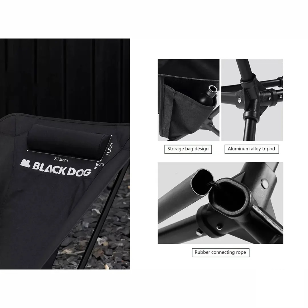 صندلی تاشو بلک داگ بهترین همراه برای ماجراجویی های شما در فضای باز میباشد که میتواند آرامش و راحتی را به بهترین شکل ممکن فراهم سازد. برای ساخت فریم این صندلی از متریال آلومینیوم 7075 استفاده شده است و جنس پارچه آن از آکسفورد 600D میباشد. پشته بلند و خمیده آن از ستون فقرات شما مراقبت کرده و حداکثر راحتی را در طولانی مدت برای کمر کاربر به ارمغان می آورد. تعبیه یک بالش مخصوص و کاربردی نیز موجب راحتی بیشتر سر در استفاده طولانی مدت میشود.این محصول وزن کمی دارد و حمل و نقل آن به دلیل طراحی منحصر به فرد و جمع شو پایه ها، بسیار آسان میباشد. صندلی BLACKDOG تا وزن 130 کیلوگرم را به راحتی تحمل میکند که آن را برای طیف وسیعی از کاربران مناسب میسازد.