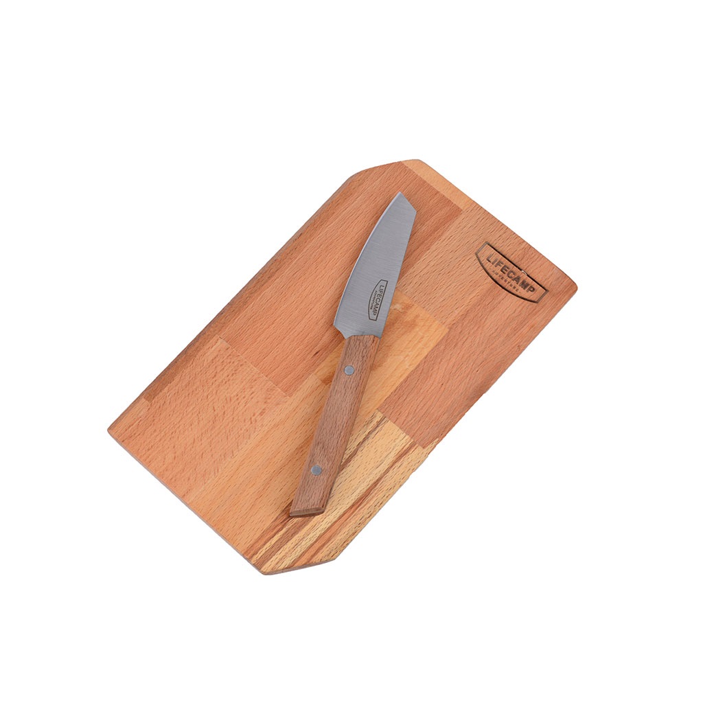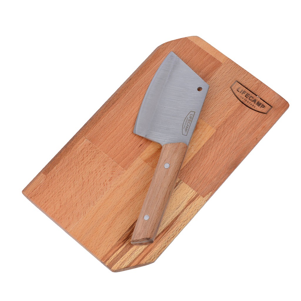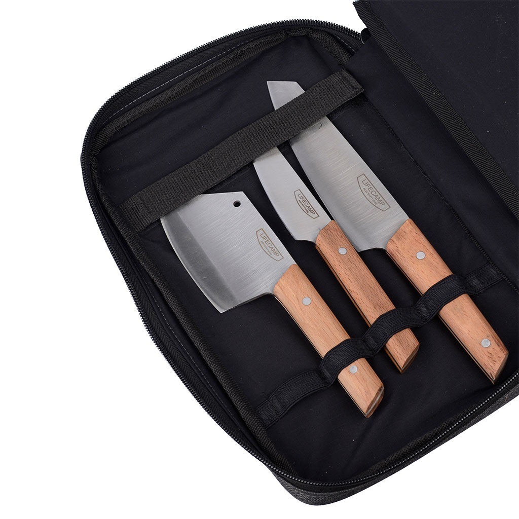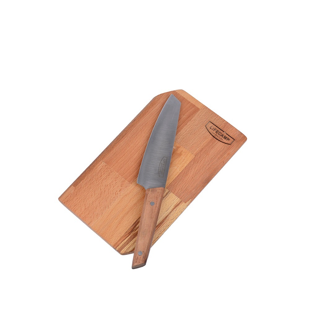 ست چاقو لایف کمپ مدل 7 تکه ژاپنی شامل دو عدد کارد 20 و 28 سانتی متری، یک عدد ساطور 25 سانتی متری، قاشق و چنگال و برگردون چوبی و تخته برش از جنس چوب بامبو به همراه کاور حمل برزنتی است که مجموعه ای بسیار کاربردی و کامل برای آشپزی در طبیعت و منزل میباشد که به علت حجم و وزن کم، میتوان آن را درون کوله به راحتی حمل کرد.مجموعه چاقو و لوازم آشپزی لایف کمپ، انواع نیاز های شما هنگام آشپزی در شرایط مختلف را مرتفع میکند و مطمئنا برای سر آشپزان حرفه ای نیز به علت کیفیت و دقت ساخت بسیار بالا، کاربردی و جذاب خواهد بود.