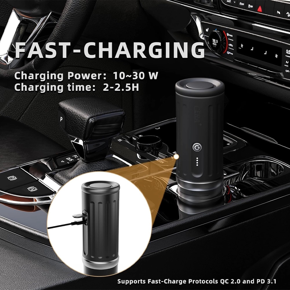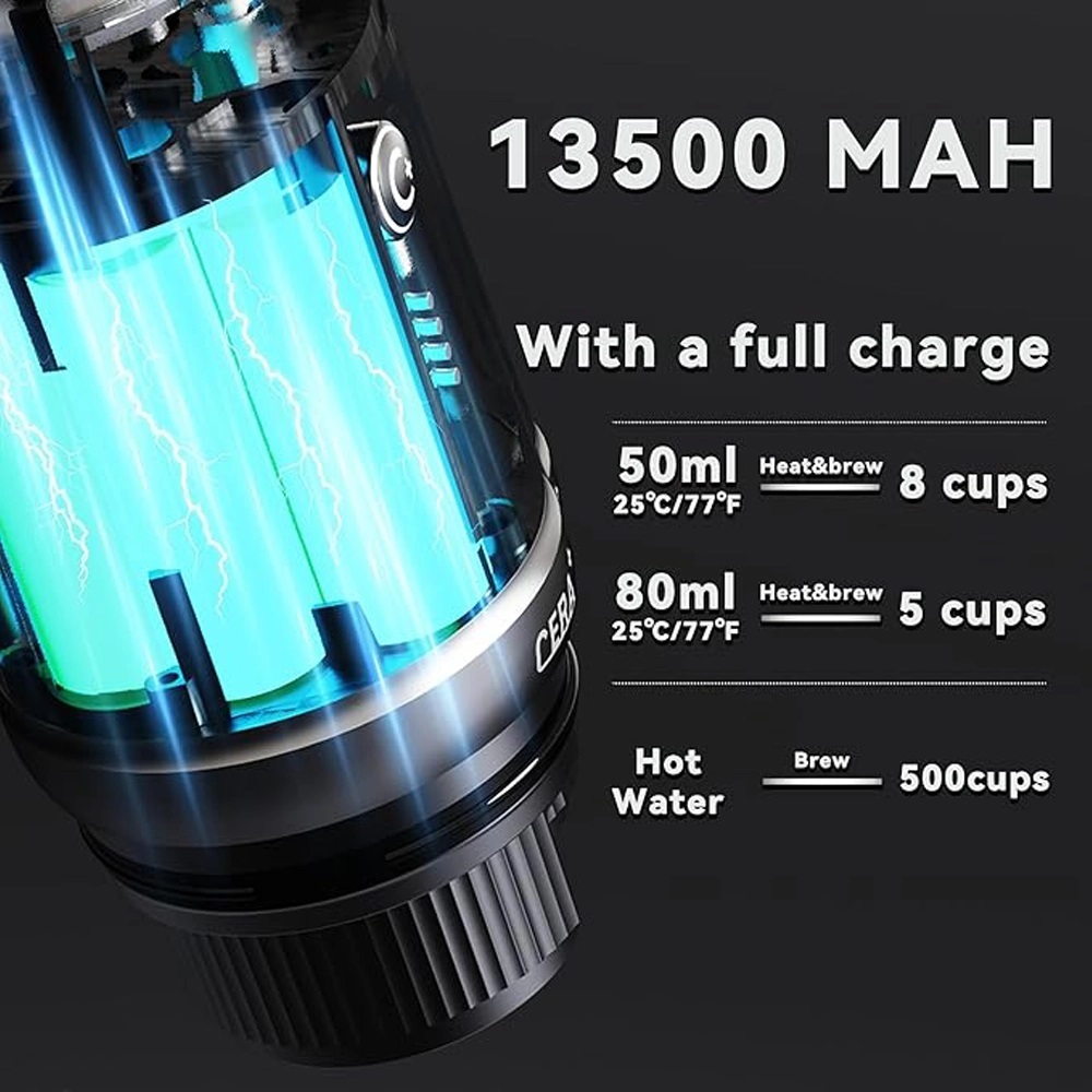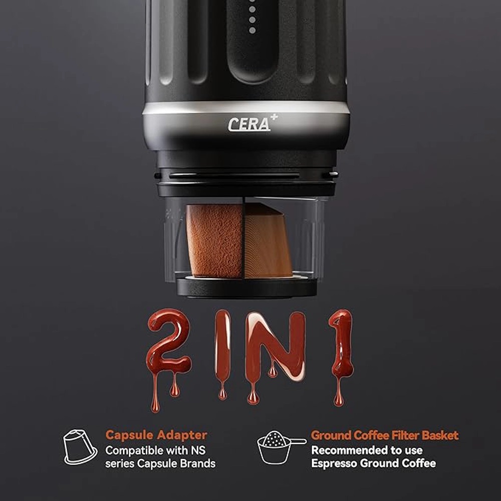 مجهز به باتری داخلی 13500 میلیآمپرساعتی، Cera+ میتواند با آب سرد 8 فنجان اسپرسو و با آب داغ تا۲۰۰ فنجان قهوه تهیه کند. شارژ کامل دستگاه حدود 2.5 ساعت Fast Charging زمان میبرد و امکان شارژ در خودرو نیز وجود دارد.